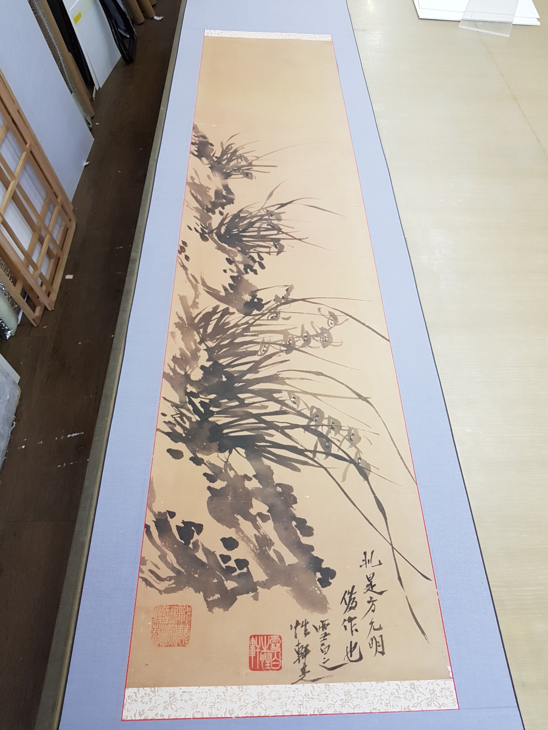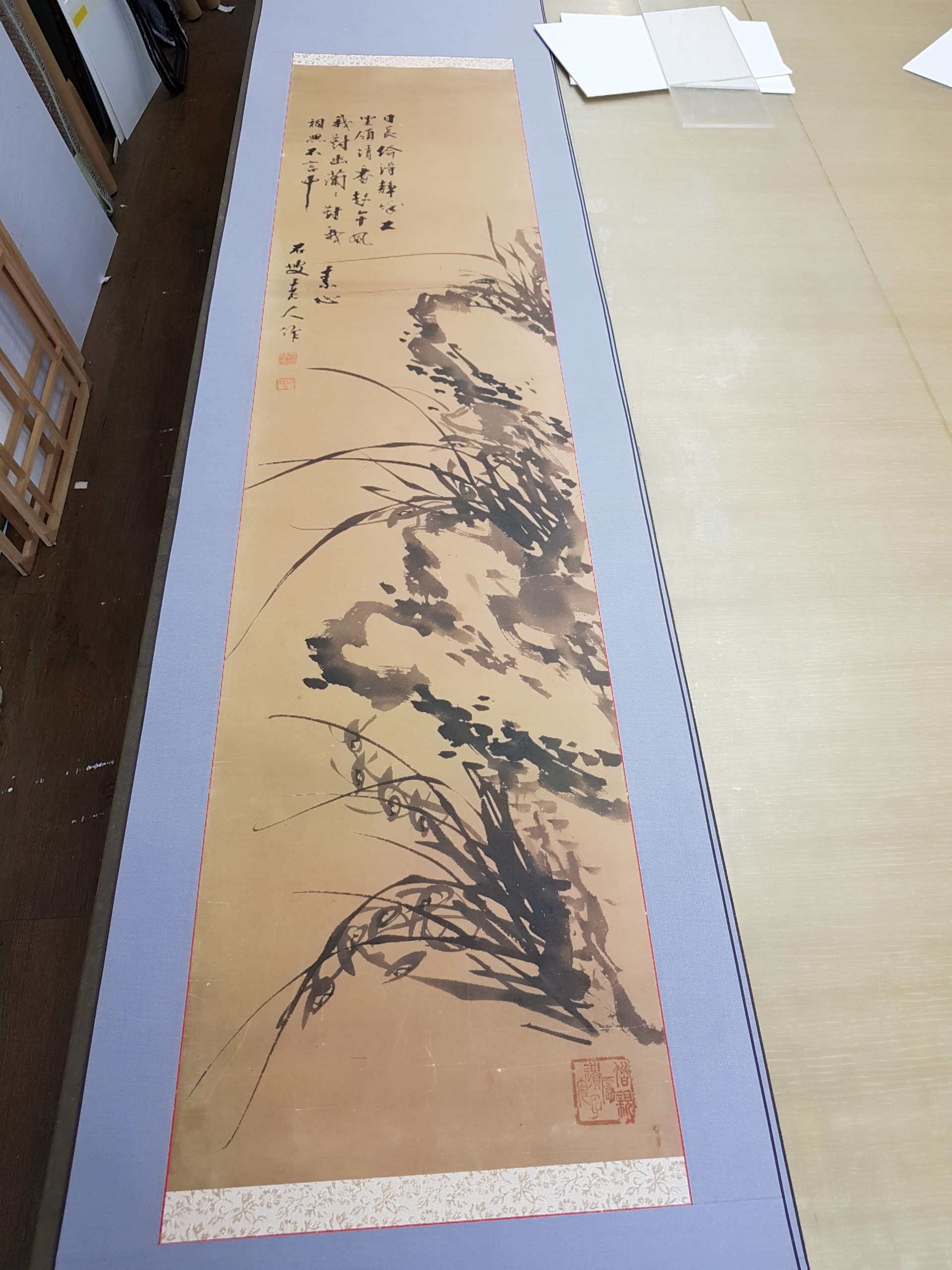 이 난족자는 사실 파본인 작가이신 부친께서 버리신 그림인데 보관하다 족자로 꾸민 것이다.
